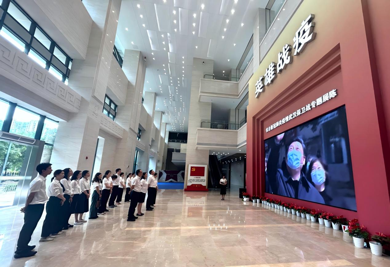 在講解員的帶領(lǐng)下,職工們依次參觀“生命至上”“舉國同心”“舍生忘死”“尊重科學(xué)”“命運與共”等展區(qū)。展陳中一幅幅珍貴的照片、一件件實物展品、一段段感人的影像資料,全方位展示了在武漢抗擊新冠肺炎疫情保衛(wèi)戰(zhàn)中,全國人民命運與共、共克時艱的壯闊歷程。參觀過程中,干部職工時而駐足凝望,時而低聲交流,在歷史與現(xiàn)實的交匯中,深刻體悟“三大精神”的時代光芒。